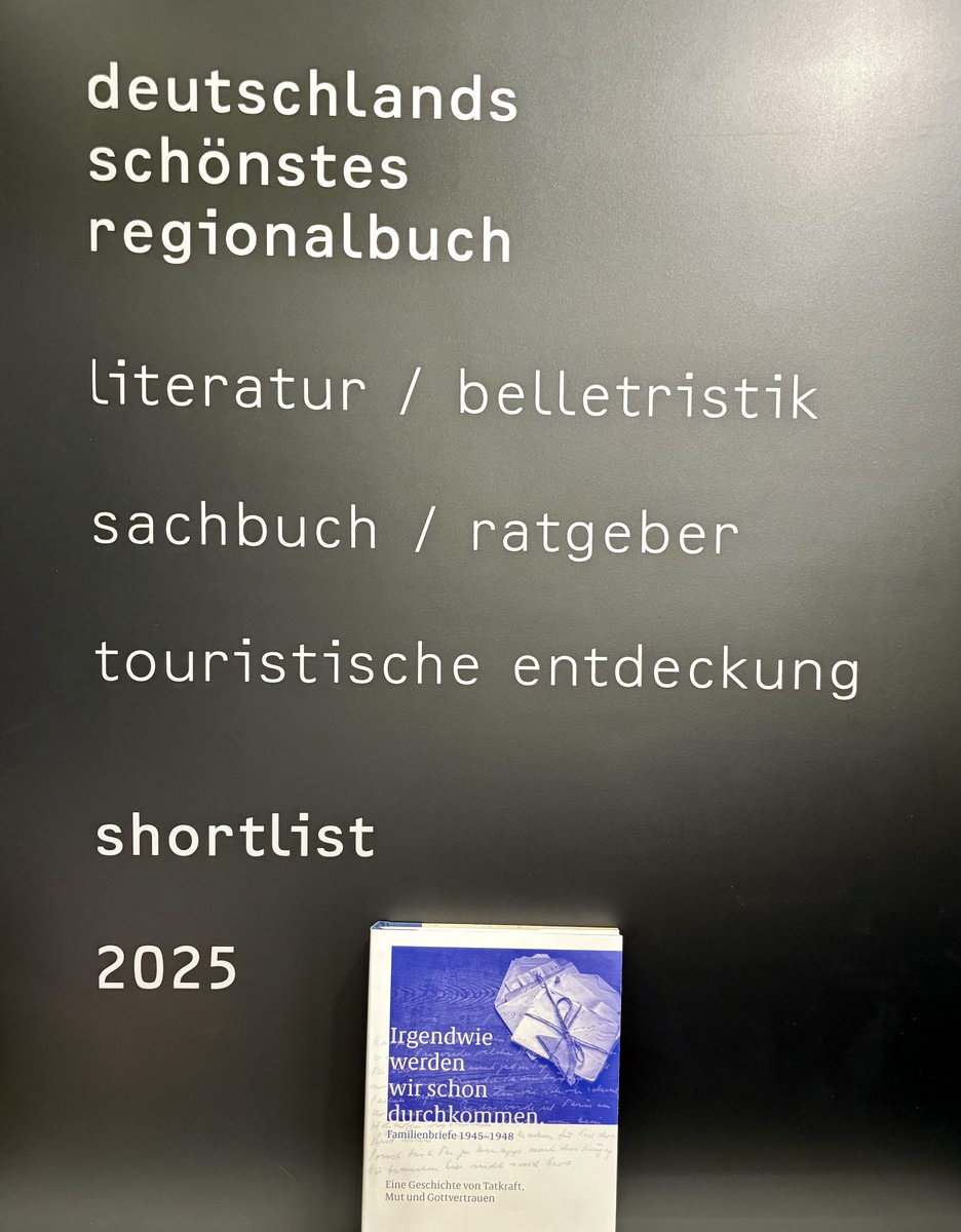 Unser Titel „Irgendwie werden wir schon durchkommen. Familienbriefe 1945-1948. Eine Geschichte von Tatkraft, Mut und Gottvertrauen.“ ist als eines der schönsten Bücher Deutschlands 2025 ausgezeichnet worden.